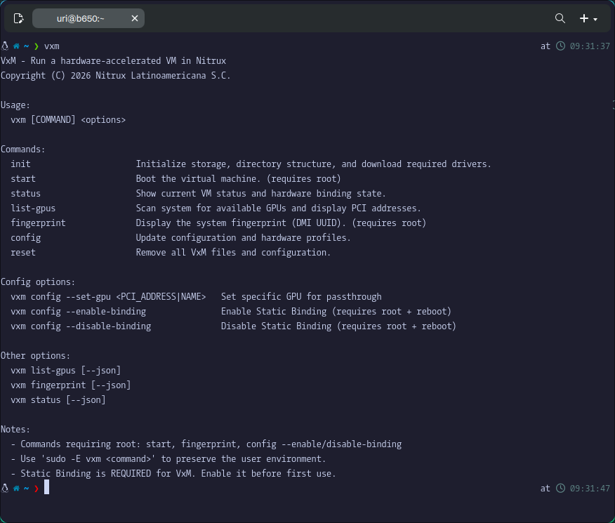- VxM: A hypervisor orchestration utility for Nitrux, engineered in C++ to enable concurrent, hardware-accelerated guest execution on multi-GPU workstations. Leveraging VFIO PCI passthrough, it enforces IOMMU isolation to dedicate discrete graphics resources to guest domains. This architecture circumvents virtualization overhead and emulation layers, granting the guest OS direct hardware control for bare-metal performance characteristics within Nitrux’s immutable infrastructure.