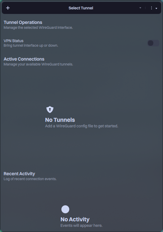 Wirecloak is a modern, native WireGuard VPN client for Nitrux, built with MauiKit. It provides a user-friendly interface for managing VPN tunnels while securely integrating with the system’s immutable root filesystem. To add a WireGuard VPN file to Wirecloak, do the following.