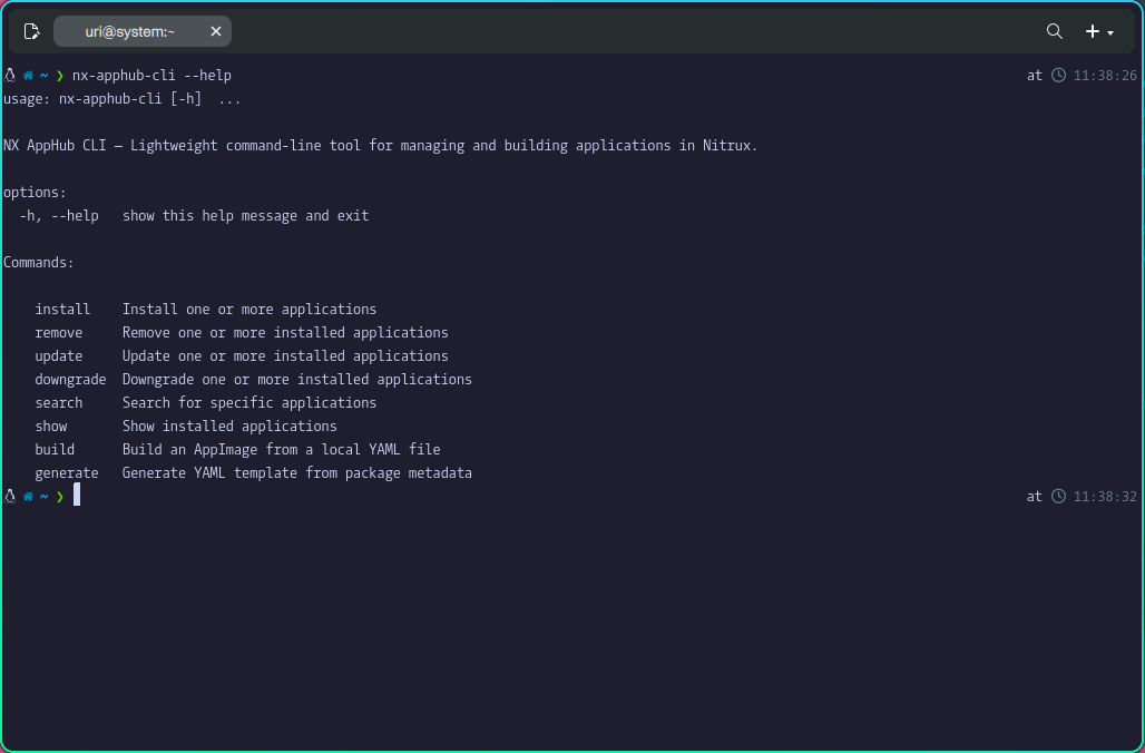 NX AppHub CLI, a lightweight command-line tool for managing and building applications in Nitrux.